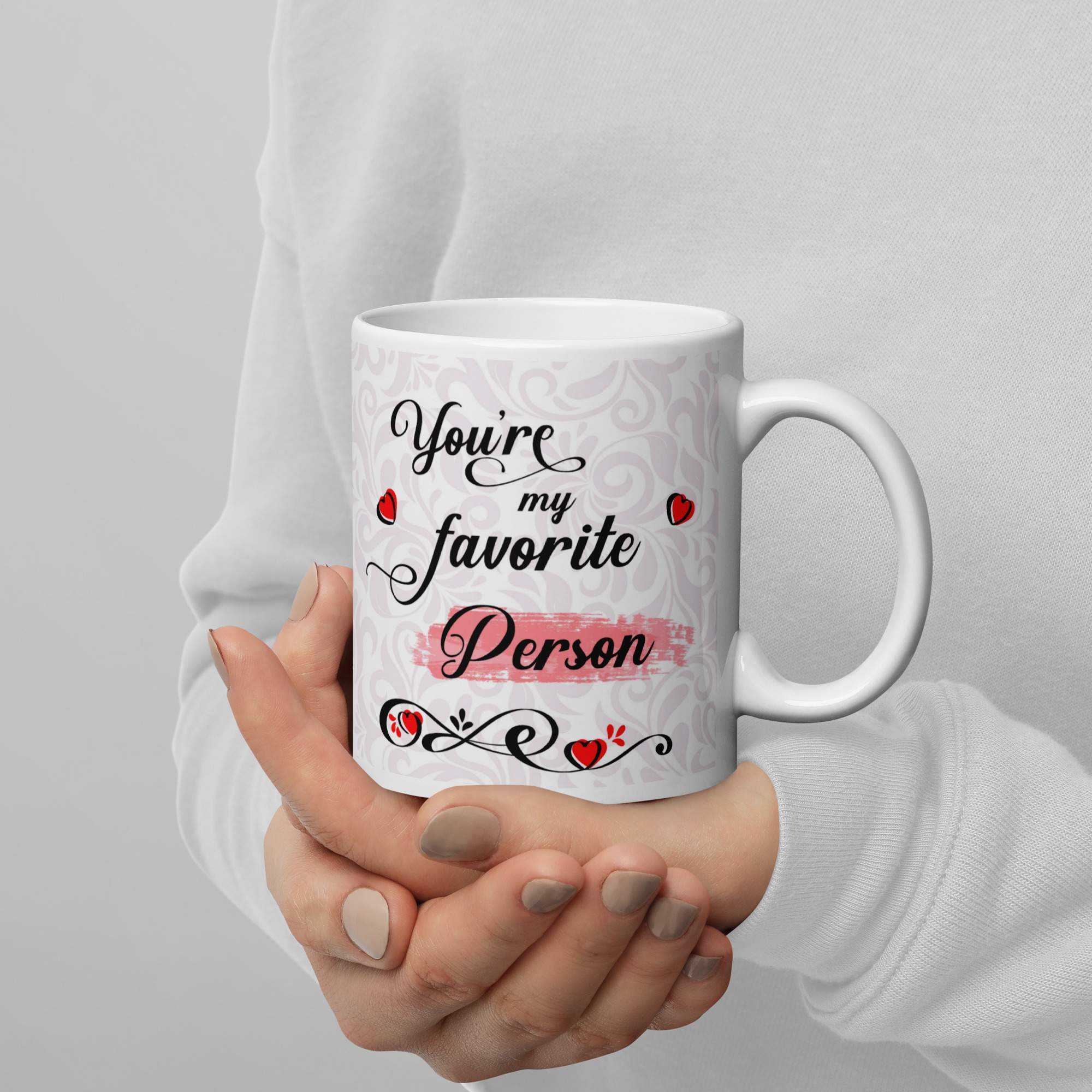 • Vit och blank https://mugglagret.se/produkt/youre-my-favorite-person/