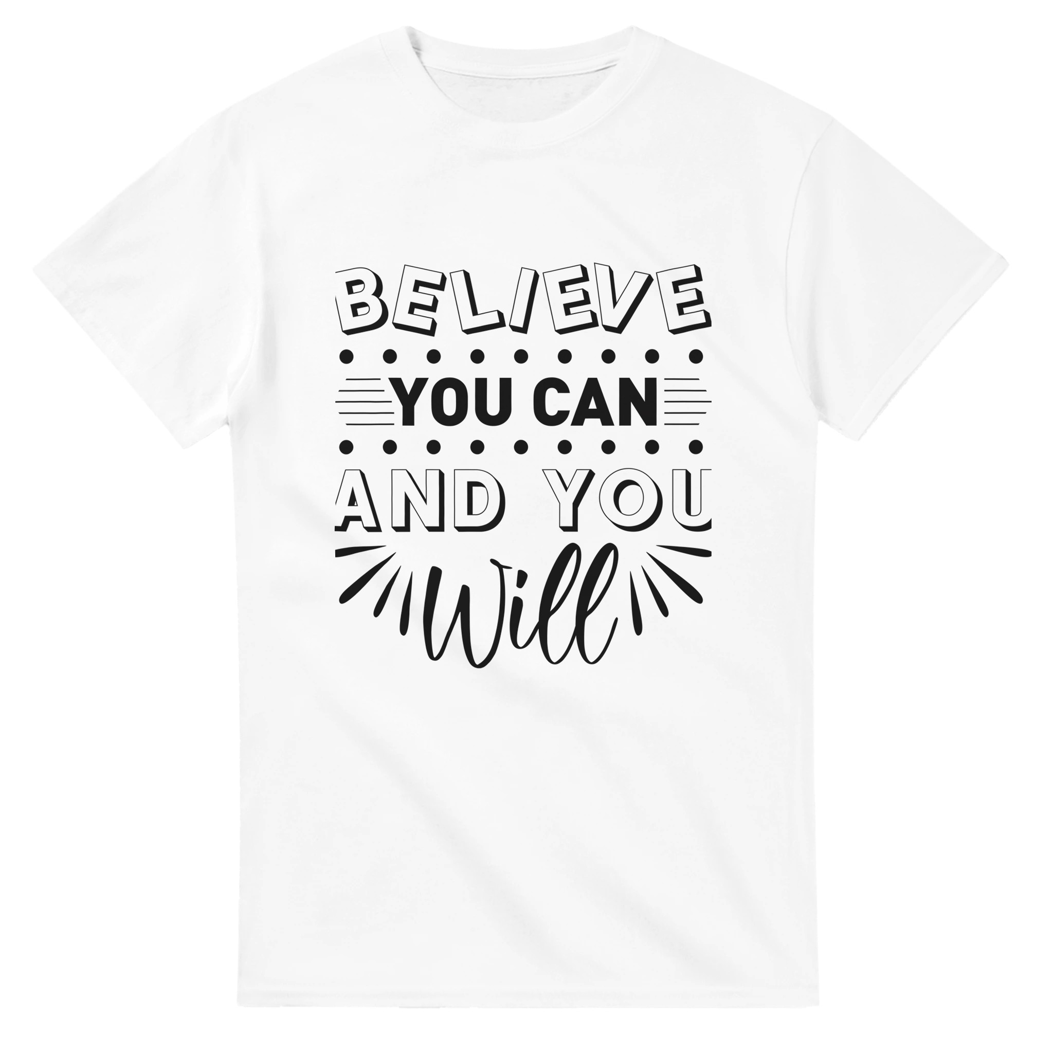 Låt dig inspireras varje dag med vår "Believe You Can & You Will" T-shirt, en kraftfull påminnelse om din potential. Denna tidlösa och slitstarka t-shirt är skapad för att motivera och ge en bekväm passform, perfekt för både vardagsbruk och som ett meningsfullt plagg för event eller profilkläder.